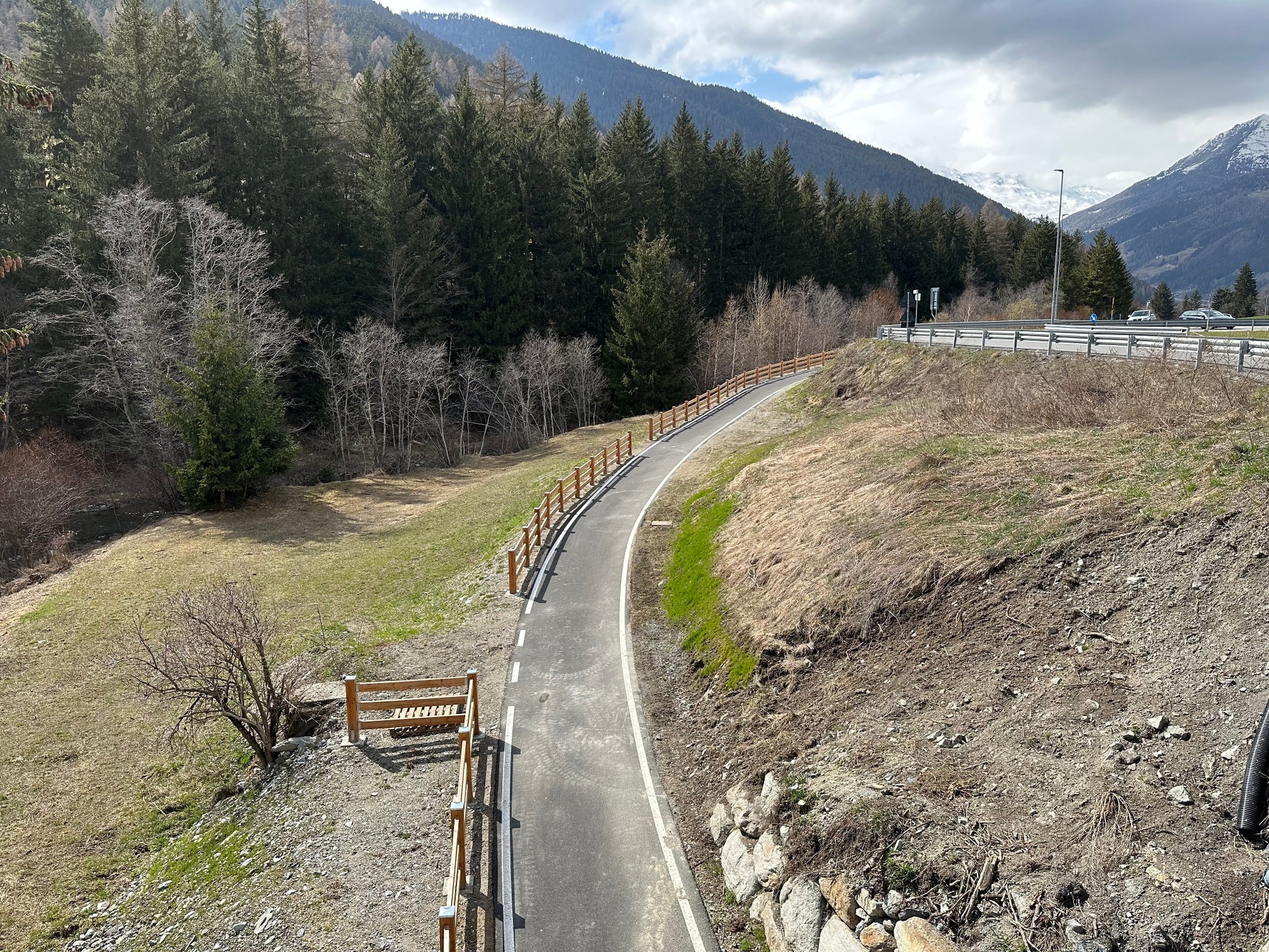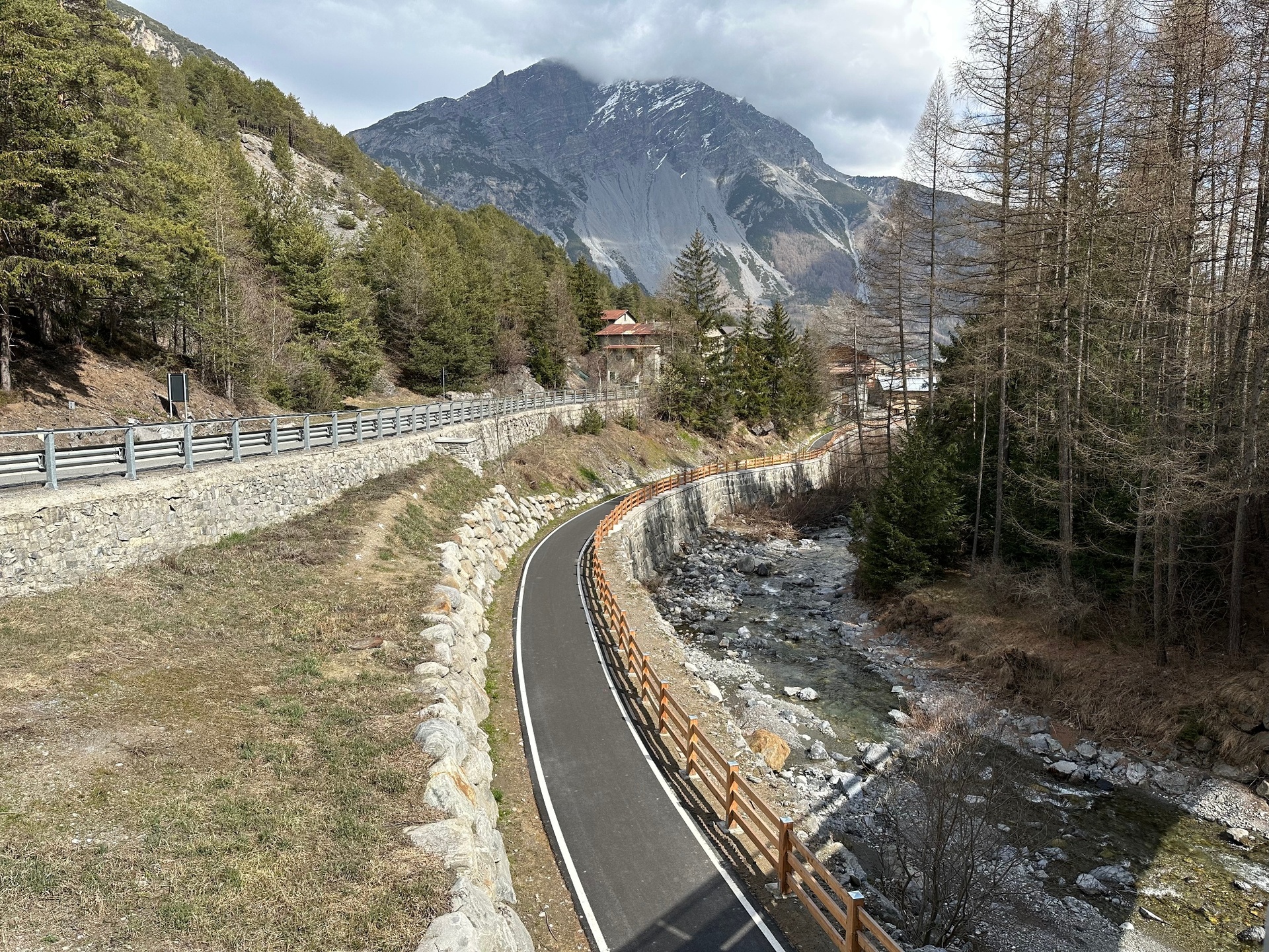 The most recently completed section starts from the Ski Stadium, crosses the bridge, and moves to the left bank of the river, passing shortly after near the Motte roundabout to then reach the "Sughetto" locality, where an ancient stone bridge with distinctive charm is crossed. A short stretch along the right bank offers views of the village of Fior d'Alpe, then crosses a new bridge which, after a slight downhill stretch, allows access to the "Planecc" sports area in Premadio.