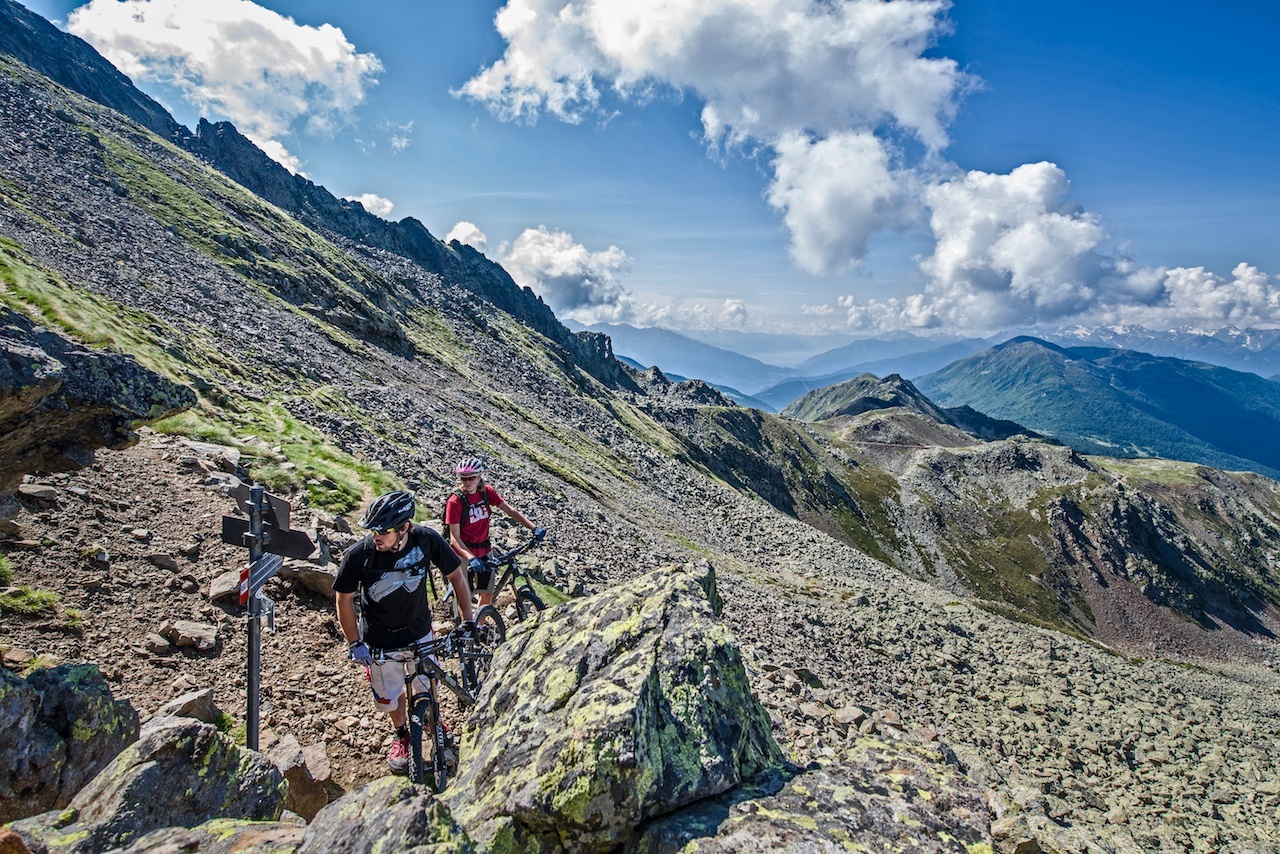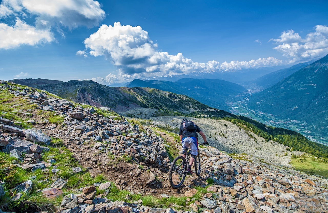 It is the descent with the longest elevation drop in all of Valtellina (1852 m) and is a sought-after destination for all bikers. During the ascent, you pass through the Passo del Mortirolo, traveled annually by cyclists riding the legendary Giro d'Italia climb. Great views and bright landscapes can be admired from Monte Varadega, while larch woods, alpine pastures, huts, and meadows accompany bikers along paths and mule tracks to Grosio.