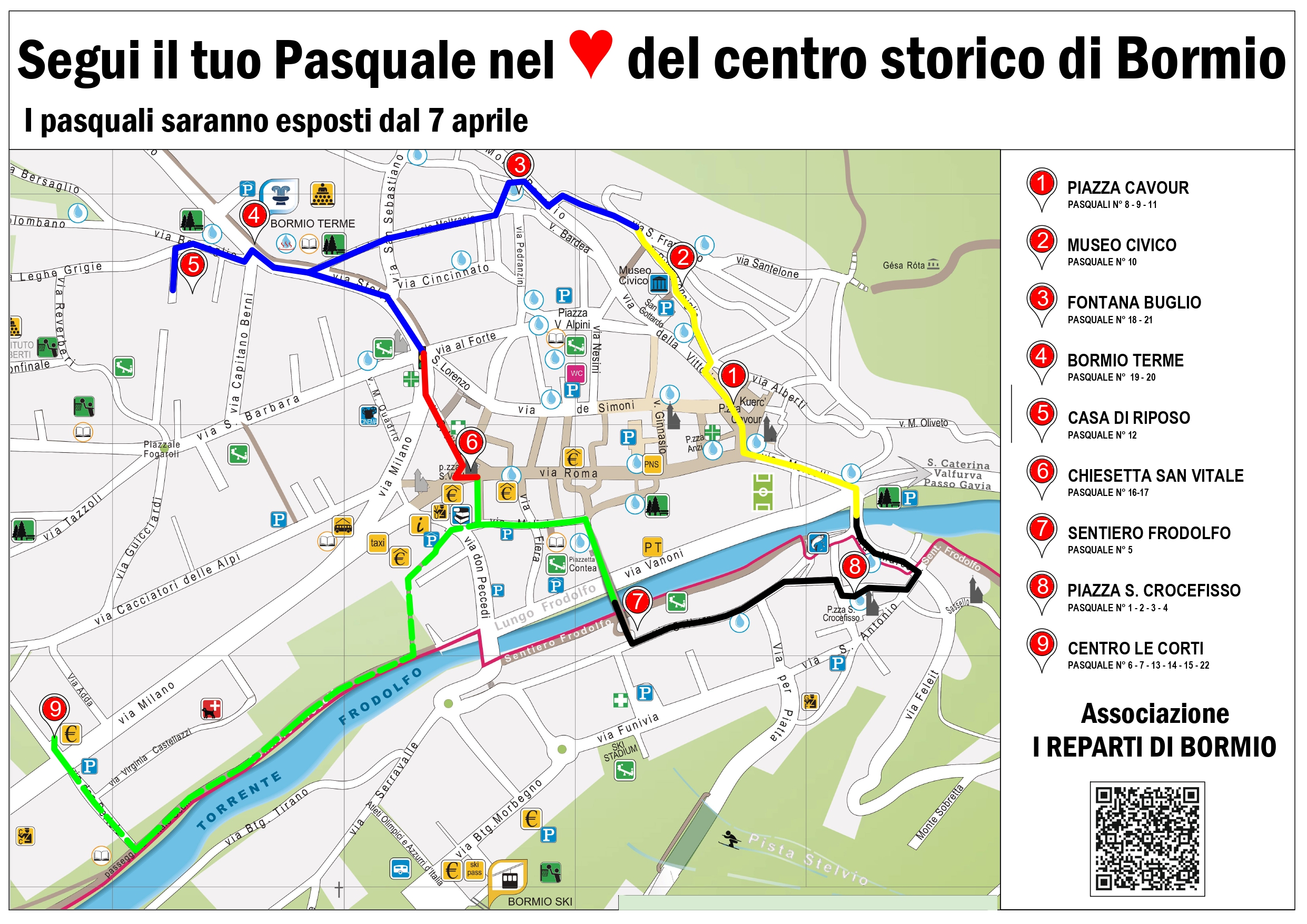 CLICCA QUI per scaricare la mappa o richiedila presso l'Ufficio Turistico di Bormio (via Roma 131/b - Tel. 0342 903300 / info@bormio.eu)