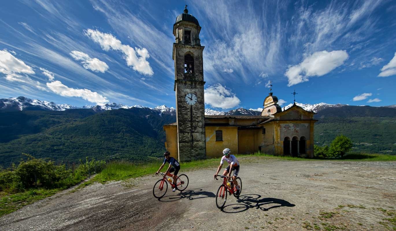 Adatto anche ai principianti, sale, infatti, sinuoso tra borghi, contrade, meleti e vigneti. Con un dislivello di 967 m e una pendenza media del 5%, è un’ascensione dolce e graduale, della durata di circa un’ora, che richiede un’andatura costante. Nei tratti più morbidi, è possibile godere appieno del paesaggio e del sole che rende questa strada particolarmente piacevole anche d’inverno. La Torre di Teglio, visibile già dopo i primi tornanti, domina la valle e guida il ciclista verso la meta.
