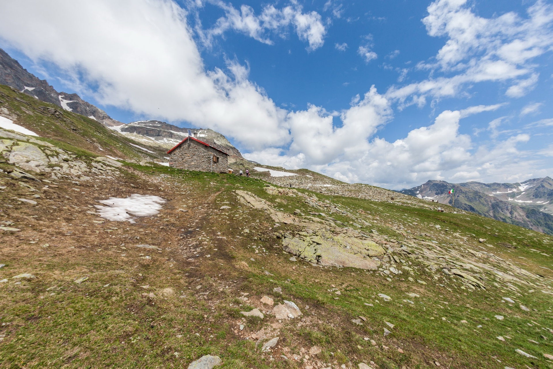 Con questa tappa breve ma di sensibile dislivello il Sentiero Italia abbandona le maestose vette dell’alta Valmalenco per trasferirsi tra le cime che si affacciano direttamente sulla Valtellina proseguendo il cammino verso est. Dal Rifugio Cristina si saluta l’ultimo ghiacciaio della zona che scende dalla cima del Pizzo Scalino, da cui prende il nome, che si contorna durante il corso dell’intera giornata. Una prima salita conduce al Passo degli Ometti con una seguente discesa e risalita al Passo Forame. Da qui si scende al Rifugio Cederna Maffina nella valle scavata dal torrente Fontana, affluente diretto dell’Adda.