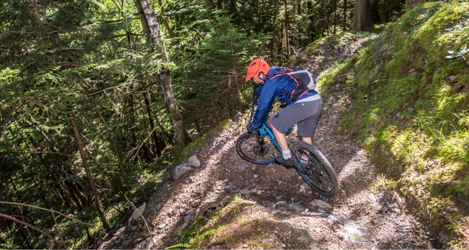 La salita per tutti gli itinerari MTB di Castello dell'Acqua si svolge lungo la strada comunale che sale dal fondo valle (area di sosta Sentiero Valtellina vicino al Campo Sportivo della frazione Cavallari), passa dalla piazza del Comune e prosegue fino all'Alpe Piazzola e ai suoi splendidi panorami sulla Valtellina (quota 1200 m). La strada e' asfaltata fino a quota 920 m circa dove diventa sterrata con fondo buono. La pendenza e' prevalentemente attorno al 7-8 % con tratti piu' tranquilli e altri piu' duri fin oltre il 10 %. Si puo' evitare la fatica salendo in auto fino al piccolo parcheggio di Ca' Gianni (quota 860 m), oppure sino all'Alpe Piazzola, acquistando il permesso presso i rivenditori autorizzati dal Consorzio di Bonifica Alpe Piazzola. Il percorso e' divertente e di media difficolta', il fondo e' quasi sempre compatto, le curve sono ampie e i passaggi con gradini sono pochi e non proibitivi. Questa discesa, cosi' come quella del Sugarel, e' piu' difficile e tecnica rispetto alle altre due presenti in zona. Dopo un tratto di strada sterrata sotto l'Alpe Piazzola si comincia la discesa su un sentiero abbastanza stretto e ripido. Il fondo inizialmente e' compatto, poi diventa progressivamente piu' sconnesso con sassi mossi. Si affrontano due tornanti a gomito e si prosegue scendendo in mezzo al bosco talvolta su fondo acciottolato, con gradini naturali e antichi muretti di sasso ai lati: ci vuole concentrazione e capacita' di controllo della MTB, ma si ottiene anche soddisfazione e divertimento oltre al piacere di scendere in un ambiente naturale affascinante. La prima parte termina sulla strada della Val Malgina; da qui una mulattiera piu' larga, ma sempre acciottolata, porta nella zona del percorso etnografico a Ca' D'Albert passando dalla Pila e dal Mulino (e' presente anche una trattoria nelle vicinanze nella frazione Cortivo). Nell'ultimo tratto si torna su ripido e stretto sentiero con alcuni tratti tecnici (tornante con gradini). Si giunge infine nel fondovalle dove si puo' visitare la Fucina.