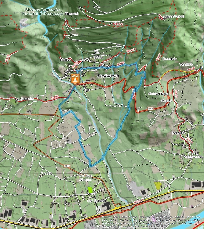 2500 chilometri di muretti a secco sorreggono la viticoltura valtellinese. Un susseguirsi straordinario di terrazzi che percorre la valle, risultato di un'armoniosa relazione tra uomo e natura. Strada del Vino e dei Sapori della Valtellina e Comunita' Montana Valtellina di Sondrio hanno realizzato una rete di 11 itinerari tra filari e scorci suggestivi, alla scoperta del Nebbiolo delle Alpi e dei suoi produttori. Variante breve: lunghezza: 4 km, durata 1:20 h, dislivello - 200 mt
