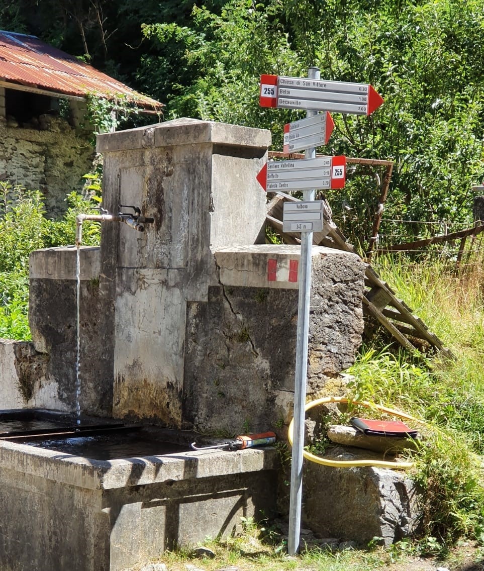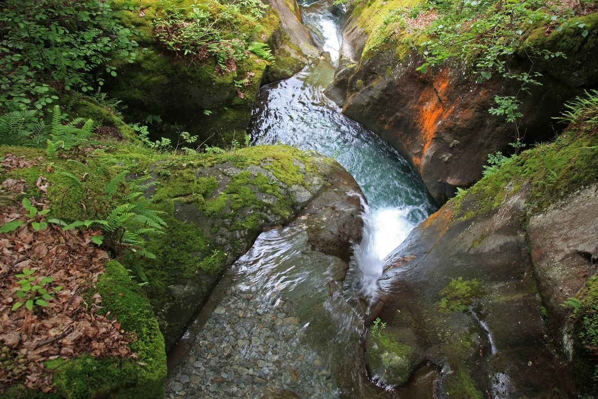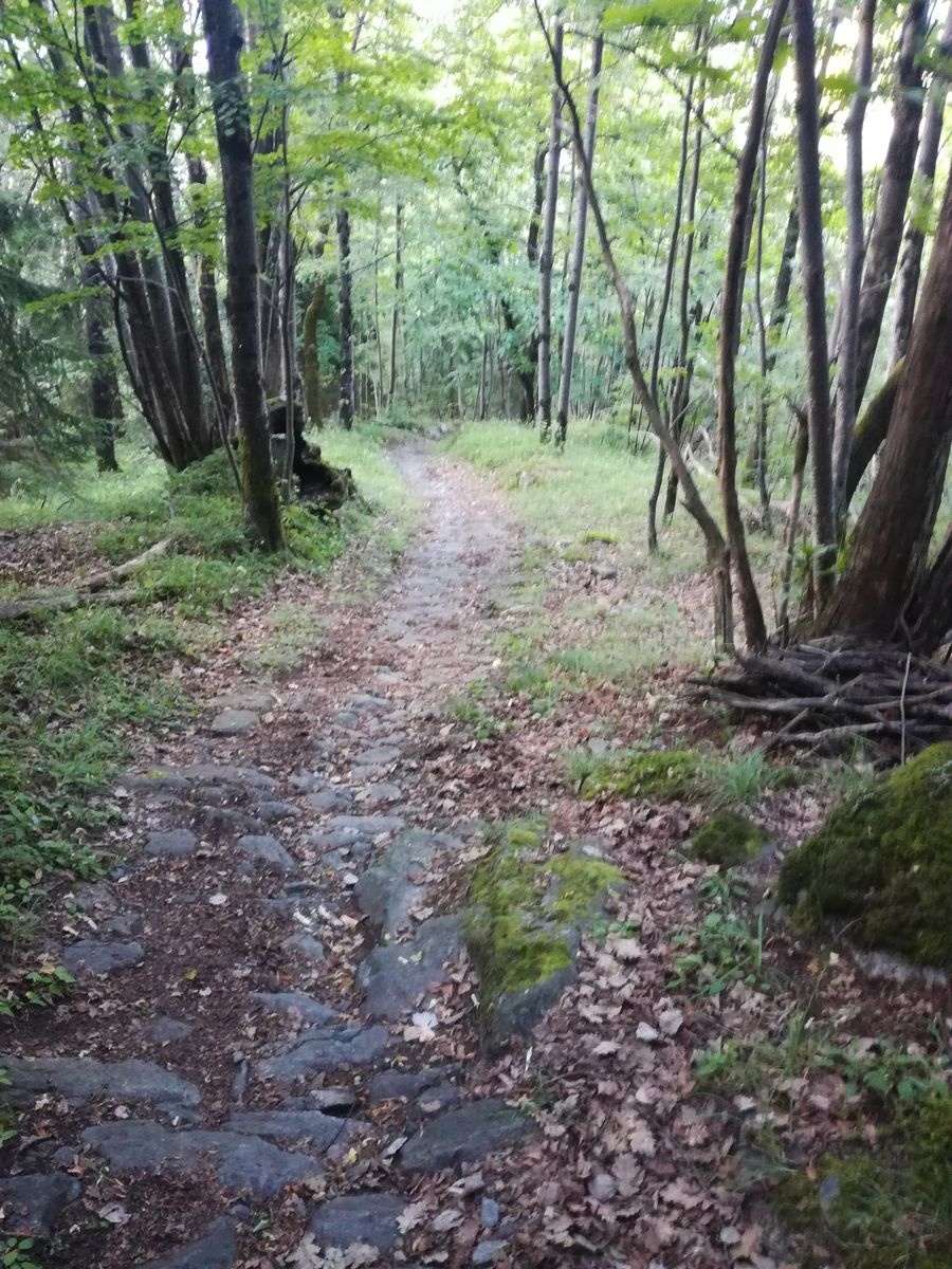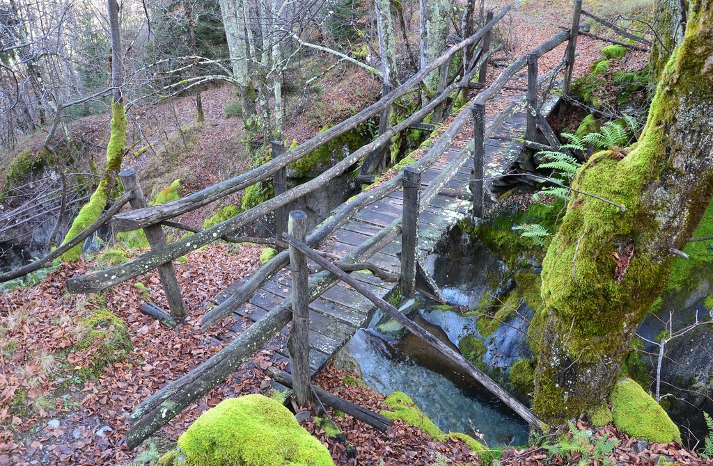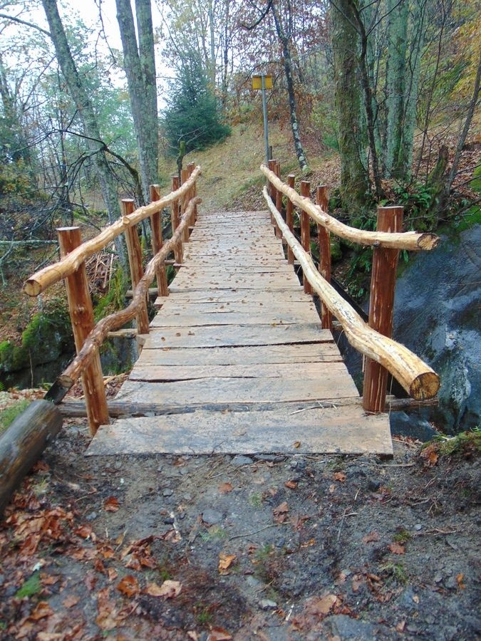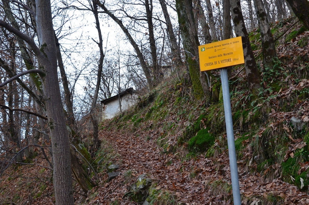 Lasciata l'automobile al parcheggio in localita' Valbona, si segue l'indicazione che porta al percorso di salita costituito da un'antica e bellissima mulattiera acciottolata, molto ripida. Salendo si incontra la Chiesa di S. Vittore. Poco oltre, una deviazione conduce alla contrada dei Bettoli, ormai abbandonata. Un nuovo ponticello sul torrente Serio ci permette di ammirare uno spettacolo molto suggestivo e unico nelle Orobie: le marmitte dei giganti. Le marmitte, profonde conche quasi circolari scovate nella roccia lungo il corso d'acqua, sono il frutto dell'azione levigatrice esercitata nei millenni dall'acqua che scorreva sulle rocce sotto il ghiacciaio. Giunti sulla sponda sinistra si puo' ammirare questo affascinante spettacolo risalendo lungo la sponda del torrente. E' necessario prestare molta attenzione nel caso in cui il terreno fosse bagnato e quindi e' sconsigliata la percorrenza di questo sentiero nelle giornate umide o piovose. Proseguendo lungo il percorso, ci si discosta dal torrente e ci si immette di nuovo sulla mulattiera, da seguire fino alla strada sterrata; quindi si scende fino al punto di partenza, seguendo a tratti la mulattiera e a tratti la strada sterrata. Lungo questo percorso si trova una vegetazione molto particolare ed interessante che, contrariamente alla maggior parte delle valli orobiche, e' di tipo xerofilo, cioe' secco. Percorrendo questo sentiero si incontra un numero relativamente basso di castagni ed il bosco, diversamente dagli altri della zona orobica, e' costituito in prevalenza da querce, betulle e larici.
