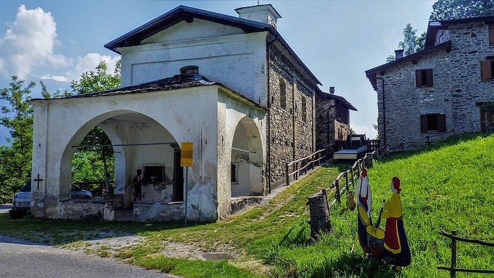 La bellissima mulattiera lastricata parte dal centro di Fusine e sale nel bosco fino ad incontrare la strada asfaltata che si segue per un brevissimo tratto. Si riprende il sentiero sulla sinistra fino a raggiungere la chiesa della Madonnina e da qui si prosegue lungo la strada per due tornanti fino all'altezza di alcune abitazioni. Sulla destra si riprende la mulattiera; al bivio si prosegue sulla destra fino alle case di Ronco e i prati del Dosso di Sotto. Poco prima di Pizzabella la mulattiera e' stata distrutta da una frano nel 1987. Giunti a Pizzabella si prende la strada carrozzabile che entra nella valle e porta al nucleo di Valmadre. Al ritorno si segue la carrozzabile, si oltrepassa Pizzabella e si prosegue fino ai prati del Dosso di Sopra da dove parte un bel sentiero che, dopo una serie di tornanti, porta al Dosso di Sotto. Da questo punto si segue di nuovo la mulattiera. Fino all'inizio del Novecento era molto fiorente lo sfruttamento delle vene del ferro ed in Valmadre erano presenti numerosi forni. Il progressivo aumento dei costi di estrazione e trasporto causo' la fine dell'attivita' mineraria e conseguentemente la popolazione abbandono' la montagna. La Valmadre in passato fu al centro di intensi scambi commerciali tra le popolazioni locali e quelle del bergamasco attraverso il passo di Dordona (2061 m.), interamente percorso dalla mulattiera. Fino al XV secolo il sentiero che percorreva la Valmadre si inerpicava fra dirupi inaccessibili; il transito di cavalli e bestiame era molto difficoltoso e quindi il ferro, i prodotti caseari, il vino e i manufatti venivano trasportati a spalla dall'uomo. Intorno al 1500 venne fatta costruire la mulattiera e il Duca di Milano impose un dazio sulle merci che transitavano attraverso il passo di Dordona. La strada carrozzabile che giunge in Valmadre fu realizzata nel 1980.