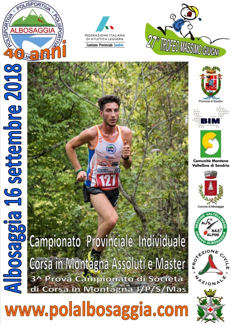 Il Trofeo Massimo Giugni impegnativa e veloce corsa in montagna, giunto alla 27ma edizione, quest'anno e' valevole come campionato Provinciale individuale di corsa in montagna per le categorie senior e master e come 3za prova del campionato Societa' di corsa in Montagna cat. JPSMas. Trattasi di una gara di corsa in montagna che dalla Moia sale sino a Gandola per poi terminare al Castello Paribelli in uno scenario fantastico. Domenica 16 settembre 2018 si disputera' la gara di corsa in montagna FIDAL per le categorie Juniores, Senior e Master e la corsa non competitiva aperta a tutti.